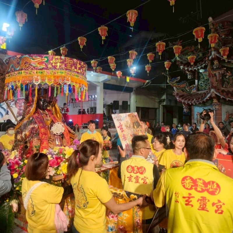 南投縣竹山鎮田子里「玄靈宮」於8日(農8/10)上午11時舉行觀音佛祖金身安座大典,身長5尺1寸,是全台灣最大的軟身觀音佛祖,現場人聲鼎沸